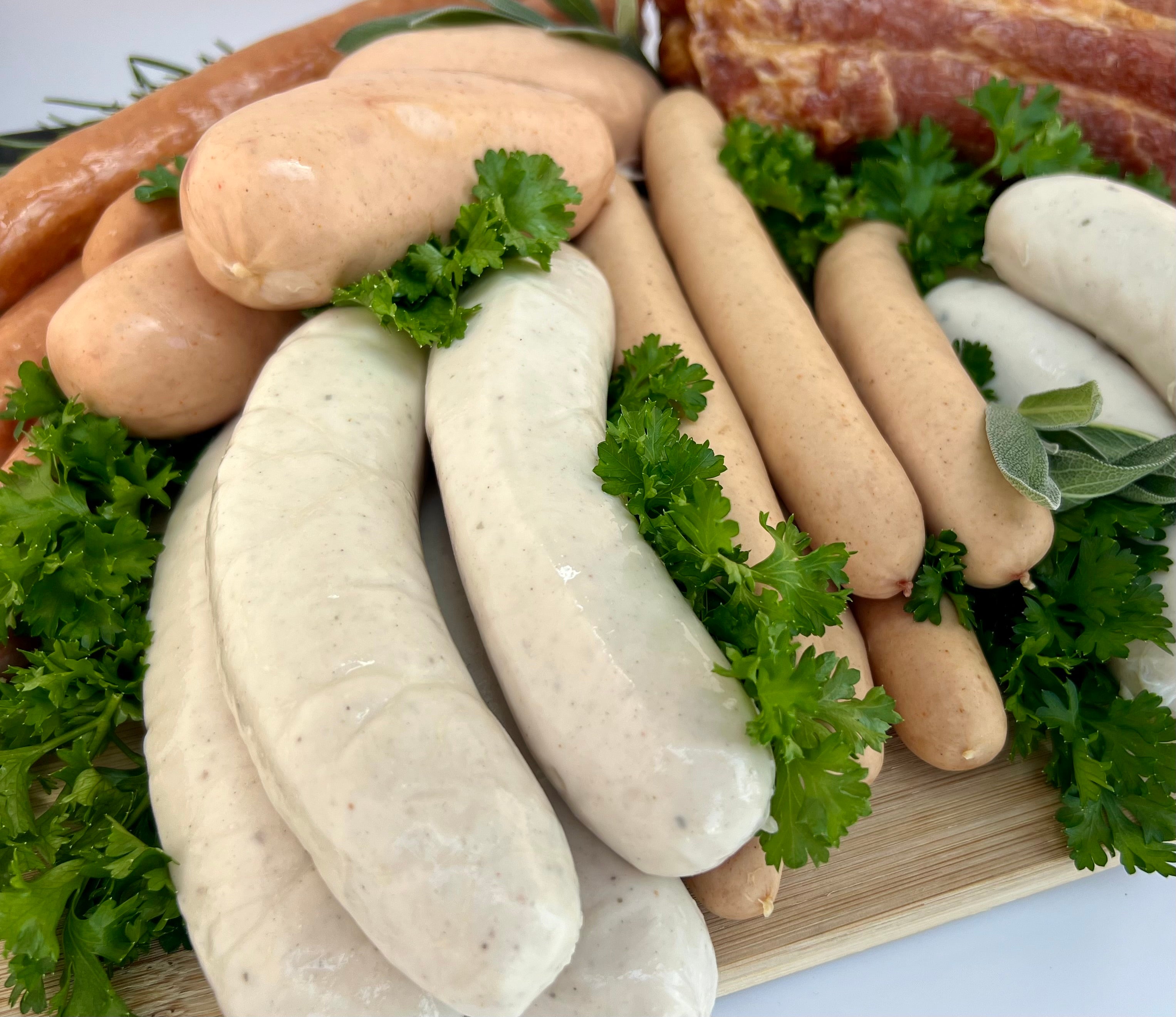 Includes 1 lb each: Bratwurst, Knockwurst, Weisswurst