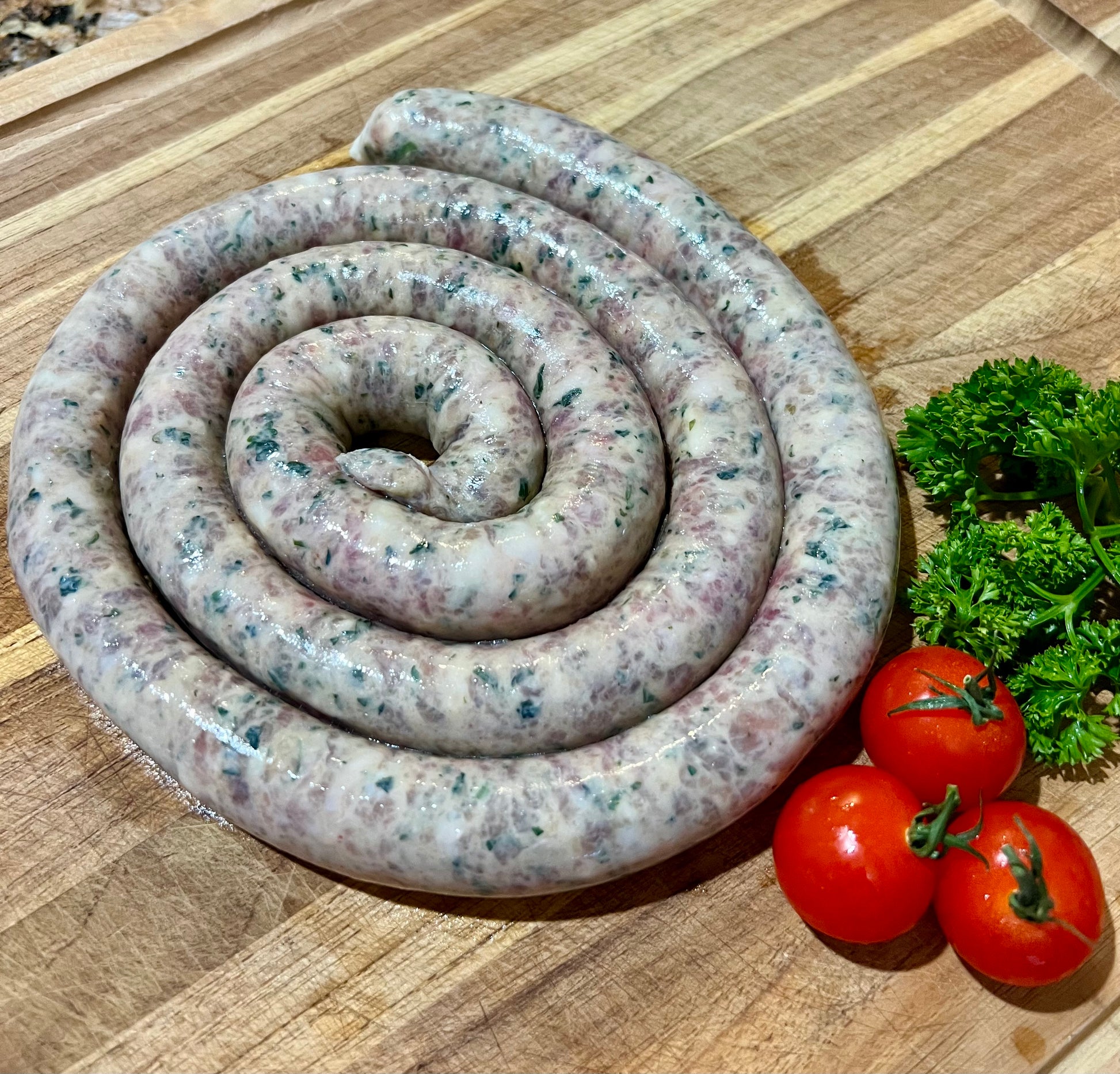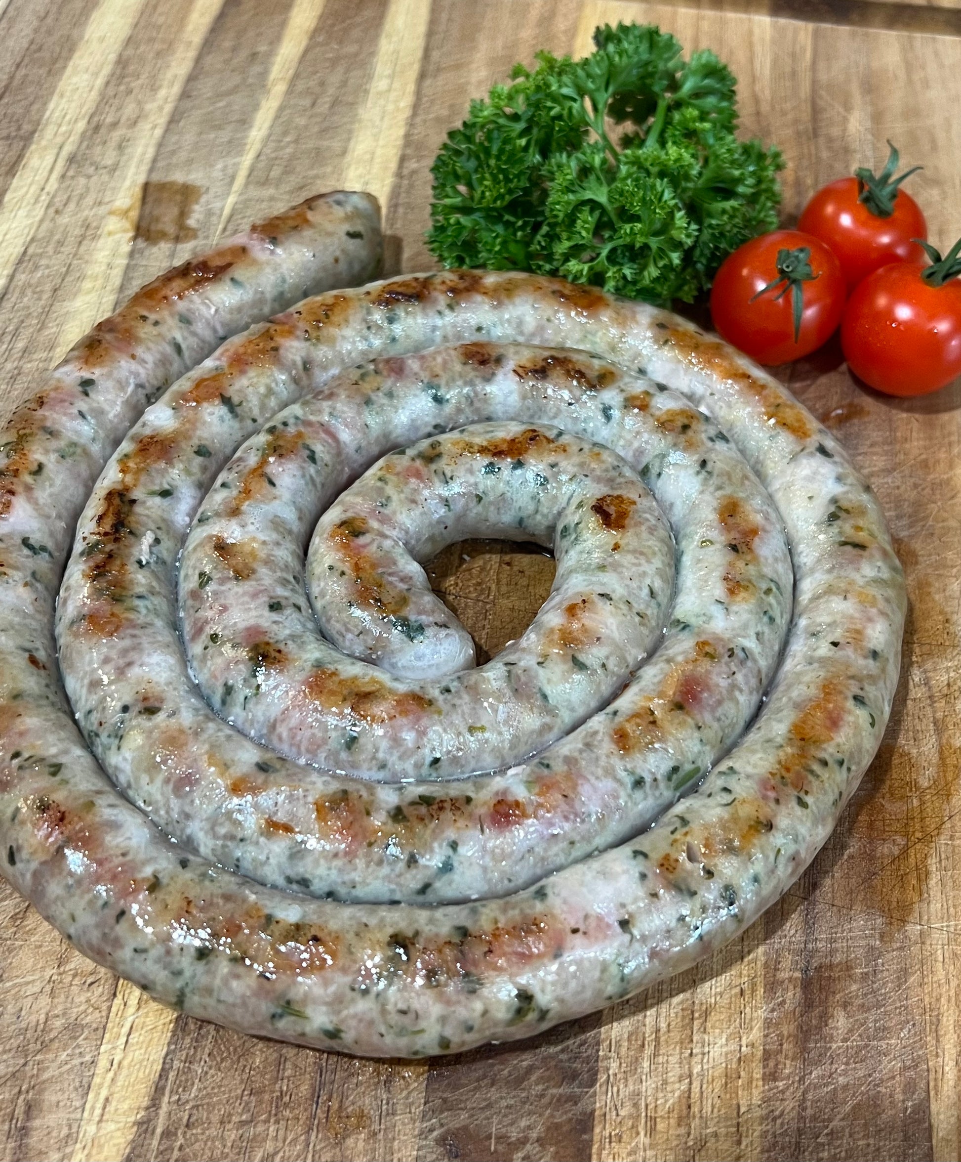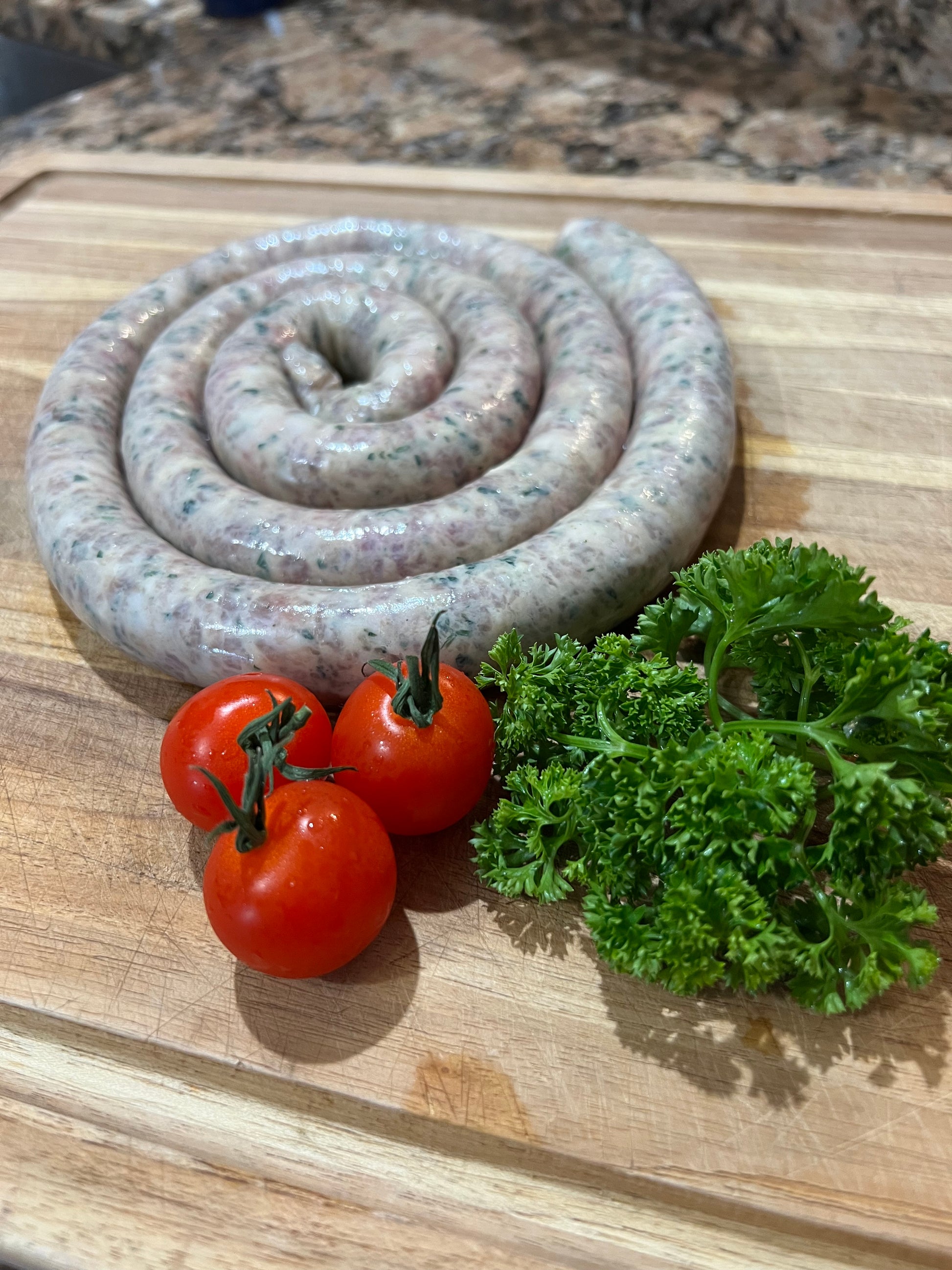 * made with Pork, Pecorino Romano Cheese, Salt, Garlic, Parsley, Basil in a natural sheep casing